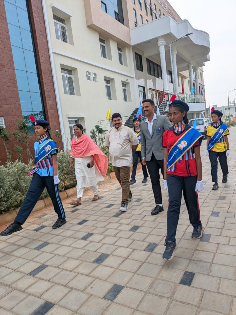 Hassan, Jan. 26: The 77th Republic Day was celebrated herein Rashtrotthana Vidya Kendra – Hassan. Retired Army Officer Dr. Venkatesh BK was the chief guest. After the guest of honour and flag hoisting, the students took out a disciplined parade.